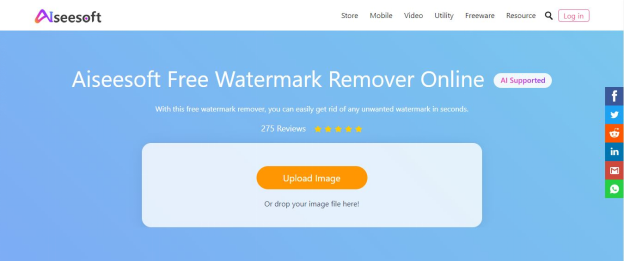 Open the webpage of Aiseesoft and click on Upload Image Icon. Upload the watermarked image.