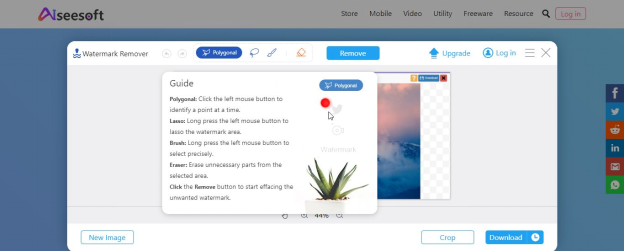 Aiseesoft Free Watermark Remover Online is recommended for removing watermarks from images. It is a completely free online watermark removal tool. All images may have their logos and watermarks removed while maintaining the original image quality.