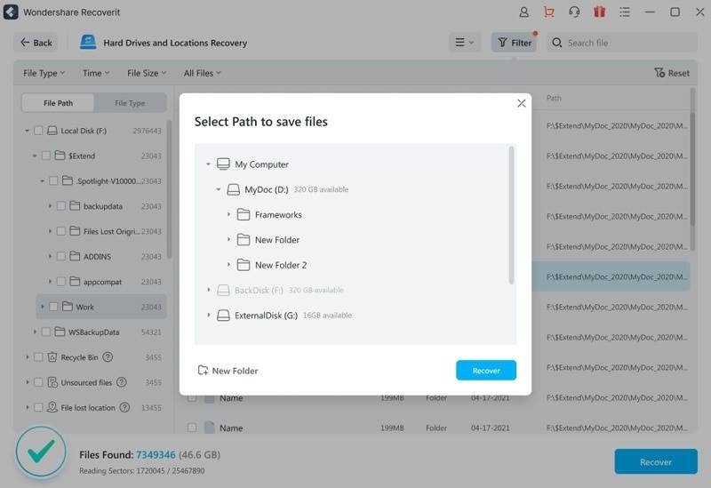 Make sure that the new spot you decide to save the recovered data is not on the same disc as the one that contained the lost photos. When the recovery is being carried out, this will prevent the files from being corrupted or rewritten in error. Wait until the recovery procedure is finished once you select another location to save photos.