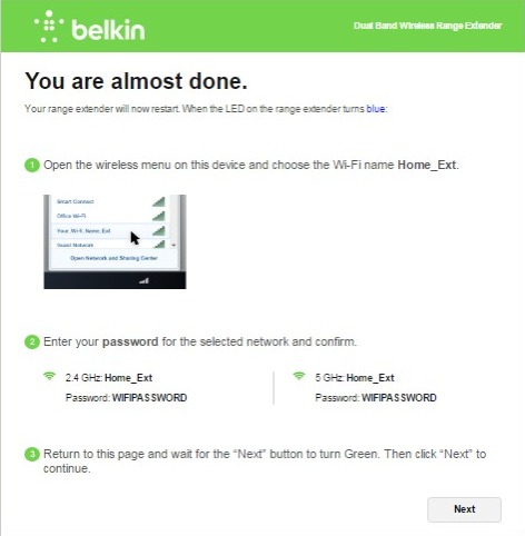 - Open a web browser, and the Extender setup will launch automatically.