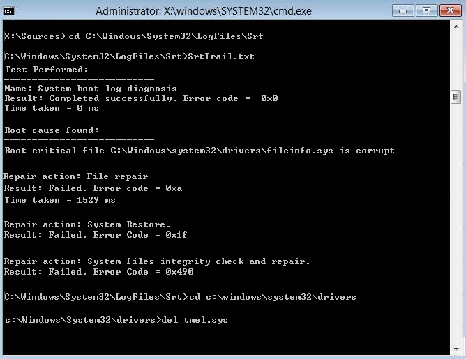 Boot critical file c:\windows\system32\drivers\tmel.sys is corrupt