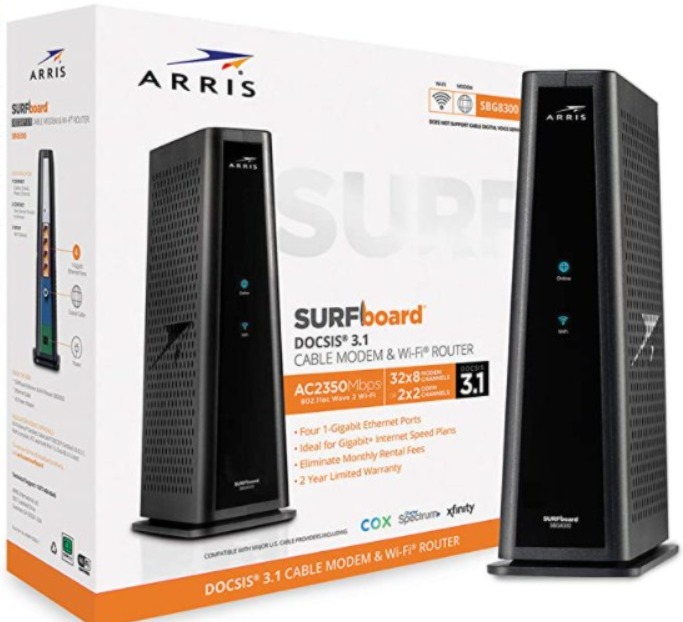 The ARRIS SURFboard SBG8300 is another perfect modem router combo for Comcast. It is a 3-in1 device featuring a modem, AC2350 dual-band WiFi, and a 4-port Gigabit router. You can use it for WiFi speeds of up to 2350 Mbps. You can easily stream HD videos and enjoy lag-free gaming.