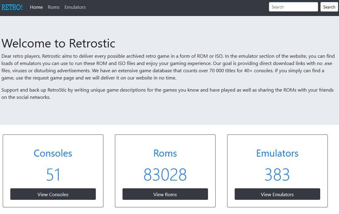 Retrostic is another contender for the best ROM site available today. You can easily find the ROM and emulator that you are looking for due to the simple interface. The website will also recommend various titles for you, which makes choosing a ROM easier. This is a great place for the classic games of older consoles.
