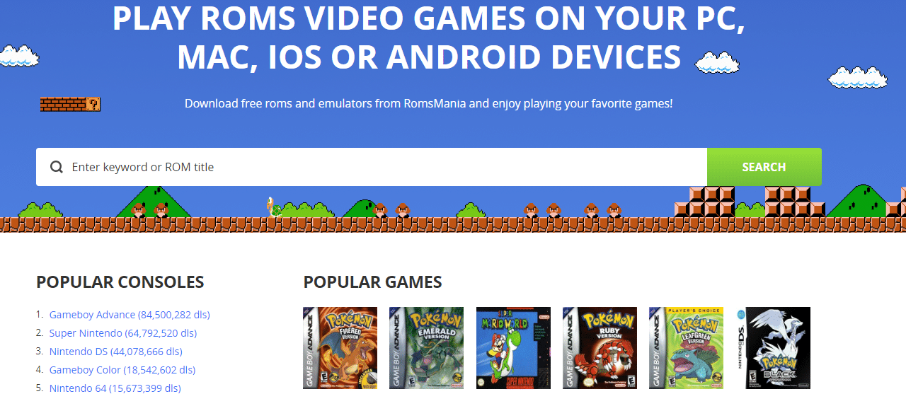 RomsMania is one of our favorite ROM sites. It has one of the largest libraries of ROMs from multiple different generations of consoles. The website is extremely informative and you can easily find the ROM that you are looking for with the search bar. The landing page also contains a list of the 15 most popular consoles and this can make finding a ROM pretty easy. You can also download emulators and BIOS from RomsMania.