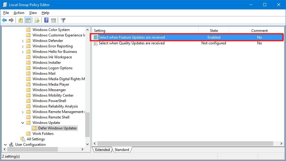 Computer Configuration > Administrative Templates > Windows Components > Windows Update > Defer Windows Updates