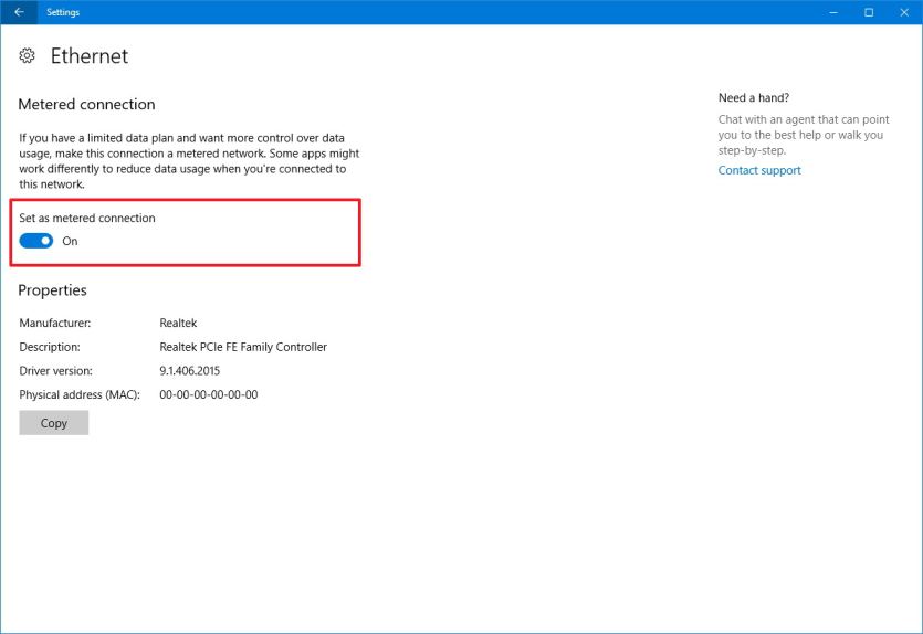 Step 3- Turn on the Set as metered connection > prevent background usage.