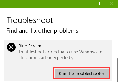 Step 3: Scroll down the options > find and fix other problems > Highlight bluescreen.