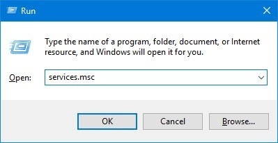 Step 1: Open the Run command windows by pressing the Windows icon key +R together. Type services.msc in the box and press enter.