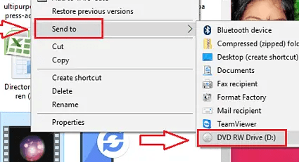Step 4: Right click on that file and then choose select DVD RW drive.
