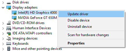 Expand Display adapters > right-click on the integrated graphics card > Update Driver.