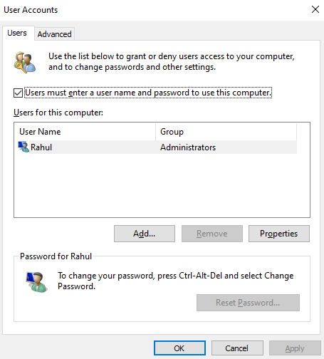 3. Choose username from the User Accounts list that wants to modify > then click on “Properties.”