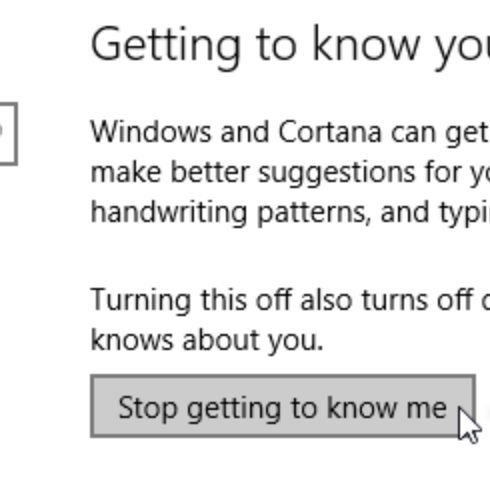Step 4: Click Stop getting to know me option. When a popup appears, click on Turn Off.