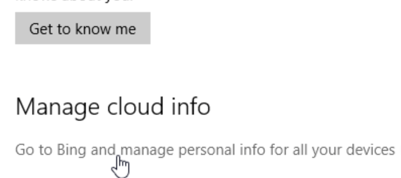 Step 1: Go to Speech, inking, & typing using the same method as mentioned above. Then click on “Go to Bing and manage personal info for all your devices” link.