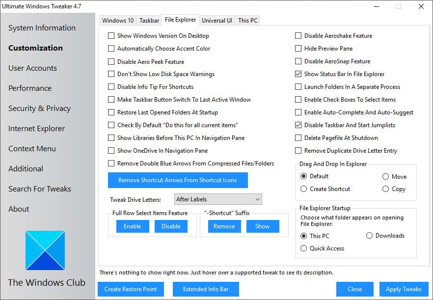This tool may seem to be less intriguing, but this tool can customize the Windows 10 behaviour and the main focus of customization of this tool in on how Windows 10 behaves rather than the way it looks.
