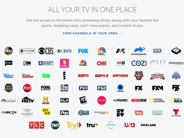 Hulu Live TV comes in at $54.99 a month and you can add more channels by paying extra. Check out the list of channels and other packages here.