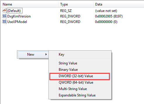 Step 4- On the Edit menu right-click on the blank area > New > select the following registry.
