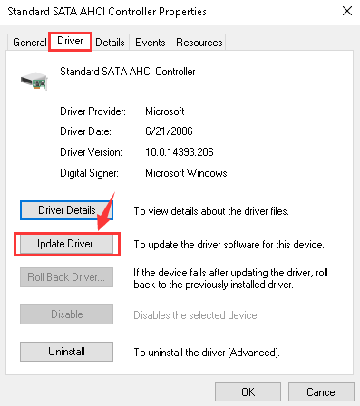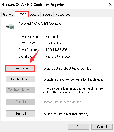 Step 4- You must verify that you have chosen the right controller. For this go to Driver and tap the details option.