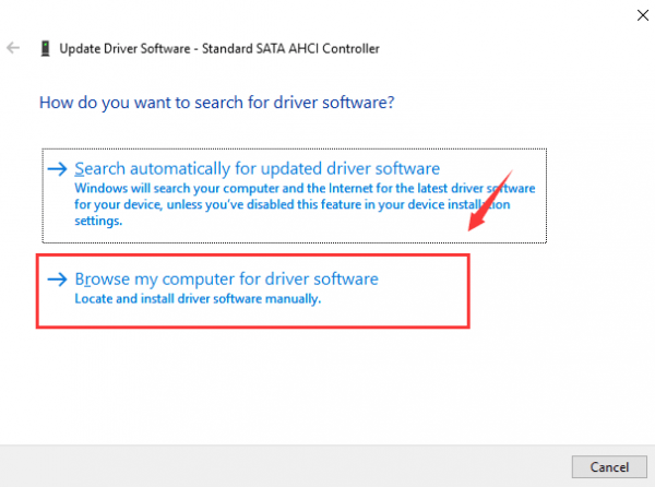 Step 7- Then choose the option Browse my computer for driver software.