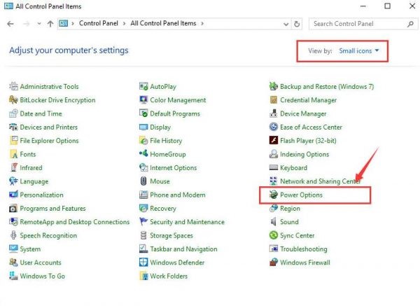 Step 1- Go to the Start button and choose Control Panel. In the control panel menu choose Power Options.