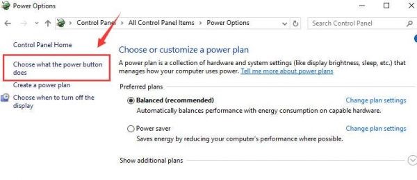 Step 2- From the left side of the panel, choose what the power button does.