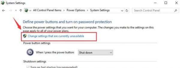 Step 3- Then choose change settings that are currently unavailable from the window that opens.