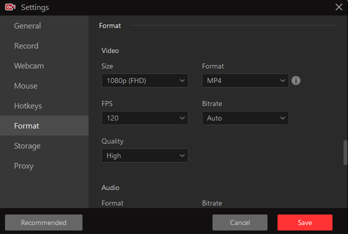 Step 2: Change Recording Options (Webcam, Format, Storage, etc.)