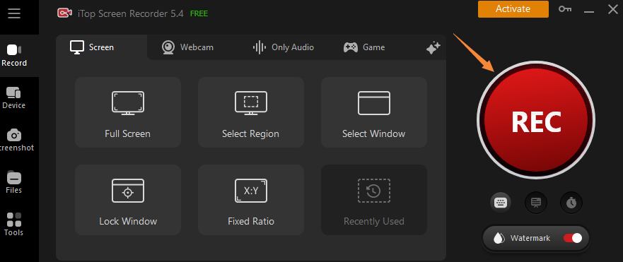 Launch iTop Screen Recorder and select your desired recording mode. Depending on your needs, you can capture the full screen, a specific application window , or a custom-selected area.