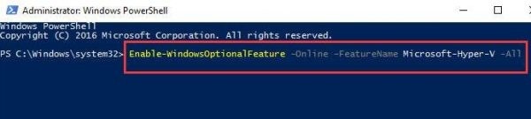 Step 3: In the command window that will open, type Enable-WindowsOptionalFeature-Online-FeatureNameMicrosoft-HyperV-All. Hit Enter.