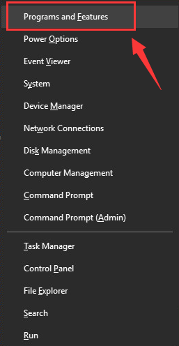Step 1: Press the Windows icon key +X simultaneously. And from the list of results, click on Programs and Features.