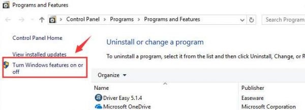 Step 2: You will observe on the left-hand side of the window, Turn Windows Features on or off. Click on it.