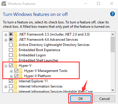 If you wish to disable Hyper- V Windows 10, then uncheck the boxes against all options given under it. And click on Ok.