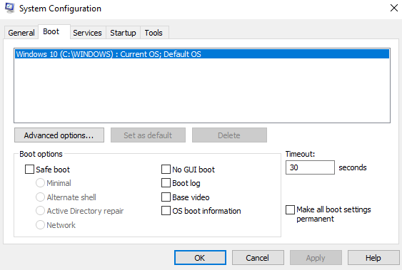 Step 2: It will open System Configuration, click the Boot > uncheck Safe boot > Ok.