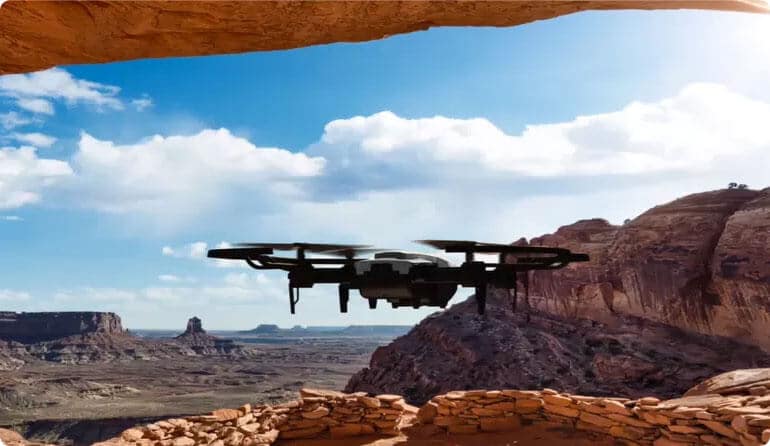 The Explore Air Drone has a large range. It can be controlled within a 100m radius and this will allow you to get wide-angle shots which would have been impossible otherwise.