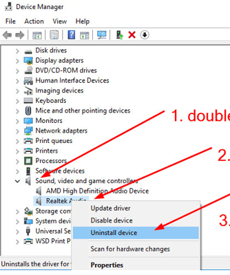 Step 2: Now, you have to double-click on the option Sound, video, and game controllers and after that right-click on the Audio Driver there you will see the Uninstall option click on it.