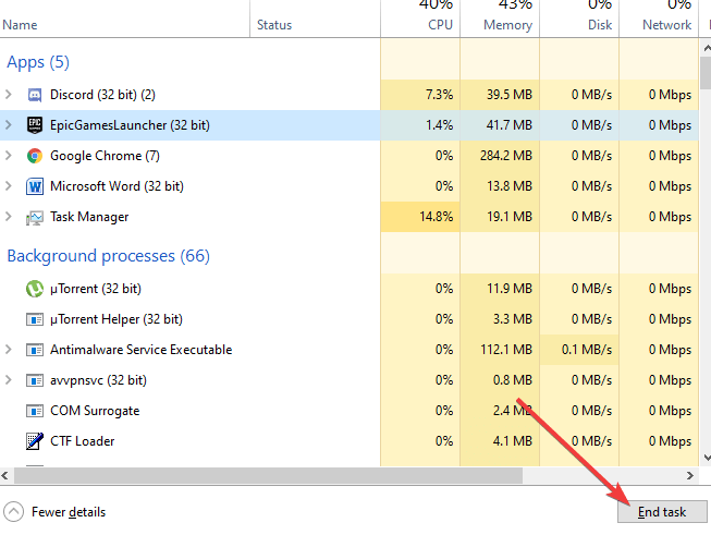 Solution 1: End the Epic Games Launcher process