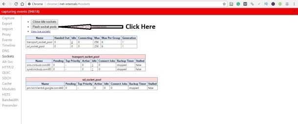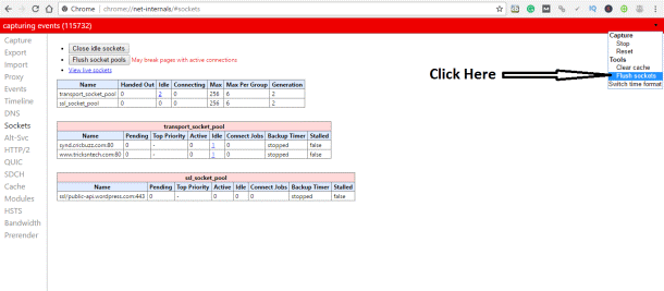 Step 5: Tap on “Flush Socket Pools” and again revisit the website to check if it is working properly.