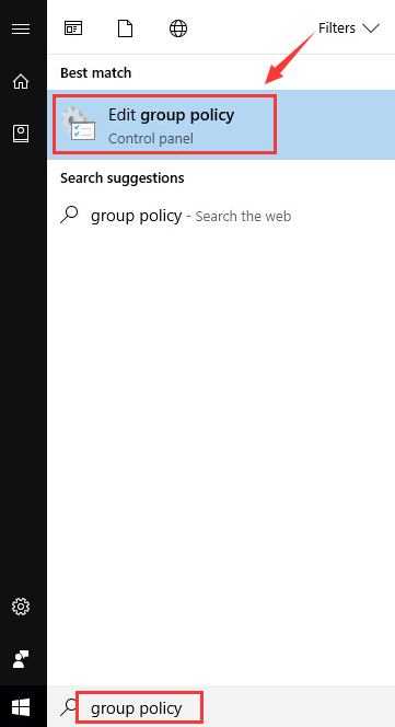 Step 1: Type group policy in the search bar. Then choose the Edit Group Policy option from the pop-up menu.