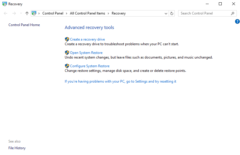 Step 2: It will open Control Panel and then click on Open System Restore.