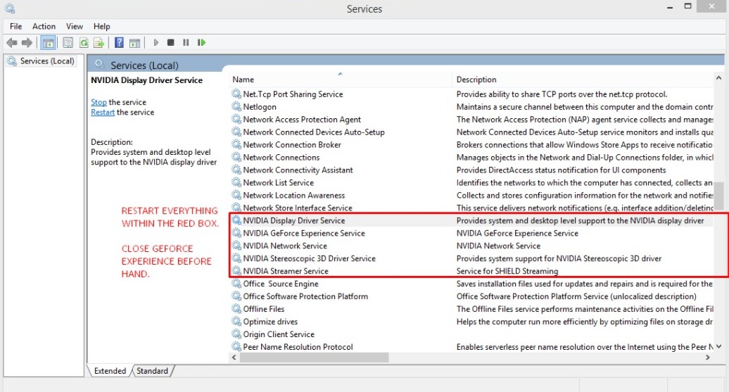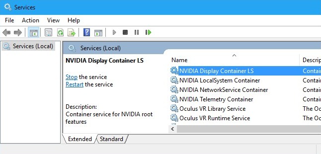 Step-2: In the Services window, find all the core NVIDIA services such as Nvidia Local System Container, Nvidia Network Service Container, Nvidia Display Service, etc.