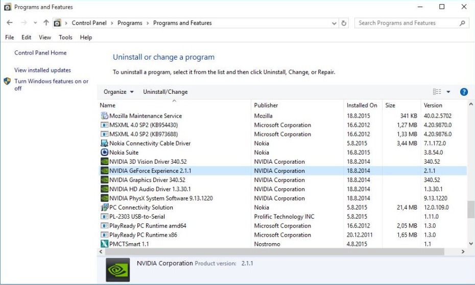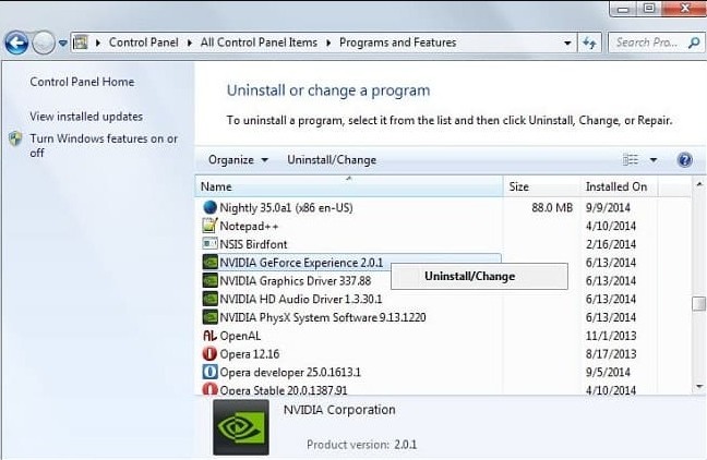 Step-1: Go to the Control Panel and uninstall the GeForce Experience.