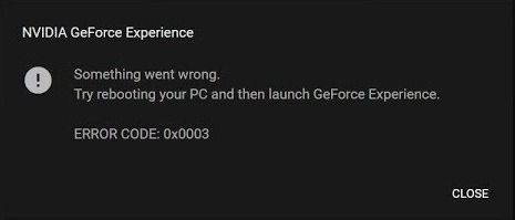 GeForce Experience Error Code 0x0003 is a phenomenon of the program malfunctioning and leading to app crashes. When this issue occurs, all the applications, including games, that request the NVIDIA card start crashing abruptly.