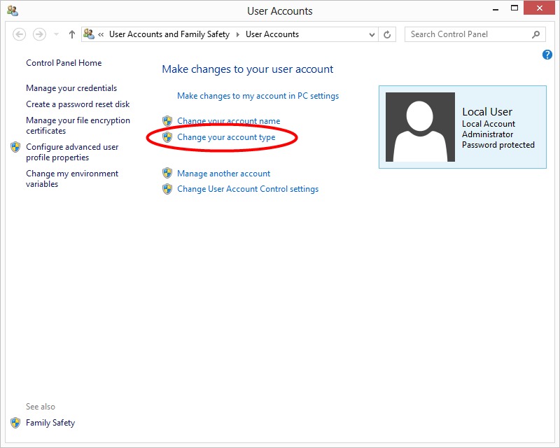 The third approach that we suggest to run windows 10 as administrator is changing a user account type on User Accounts. It is another direct way to change the user account type though User Accounts.