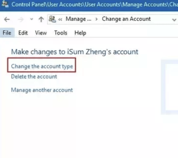 Step 4: Then, click on Change the account type.
