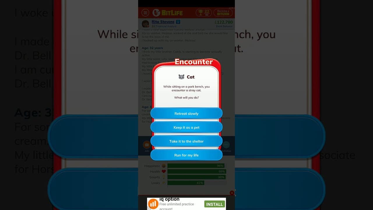 Maintaining a healthy body is just as important as maintaining a healthy mind, which includes getting to the gym as soon as possible. Maintain a health and intelligence level over 90 percent. Starting as early as possible in your life, you might begin taking up freelancing or part-time jobs to supplement your income as an afterthought. Having cash on hand is usually beneficial in BitLife.
