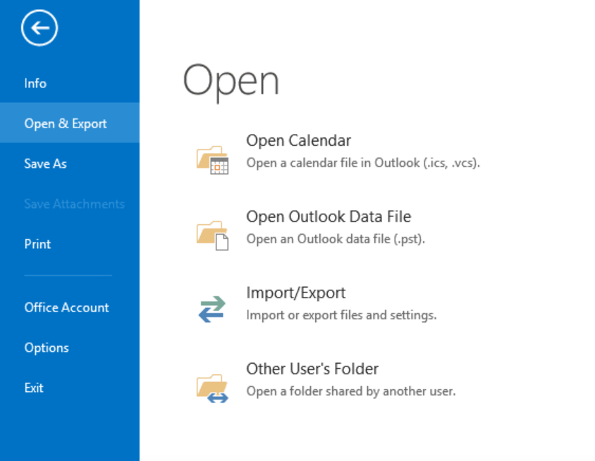 - From the left-pane menu, click on “Open & Export” and then click on “Import/Export’.