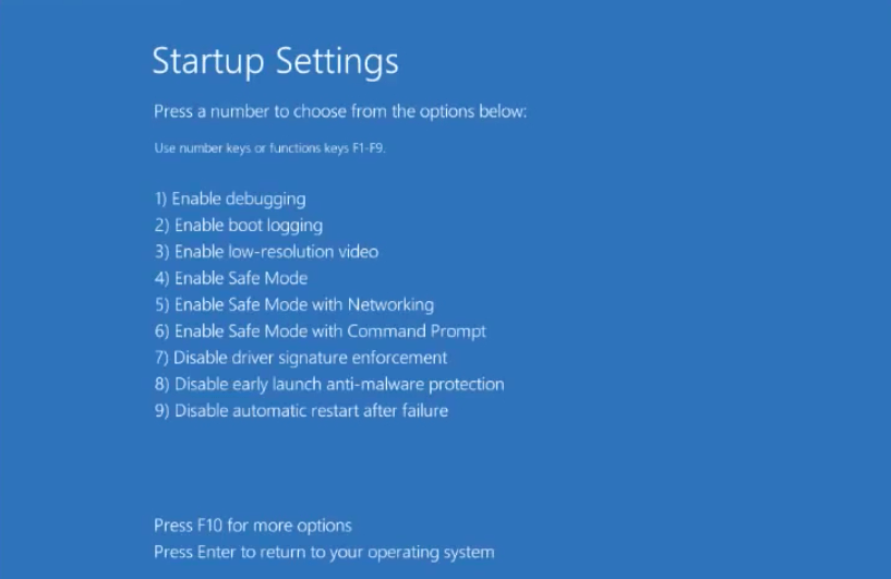 - Navigate to Troubleshoot > Advanced Options > Startup Settings > press 4.