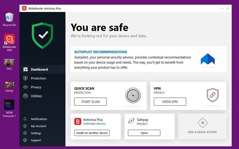 But, if you get Bitdefender Antivirus Plus or Total Securit, you can install the software on up to 5 devices and will get access to all the premium features like the VPN service, parental protection, etc.
