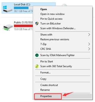 Right-click > choose Properties.