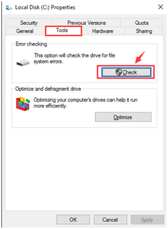 Or you can use the default tool to check hard disk errors.