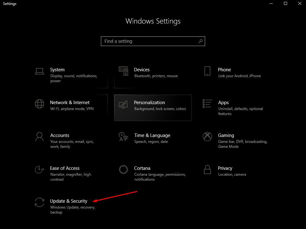 Click on Update and Security.